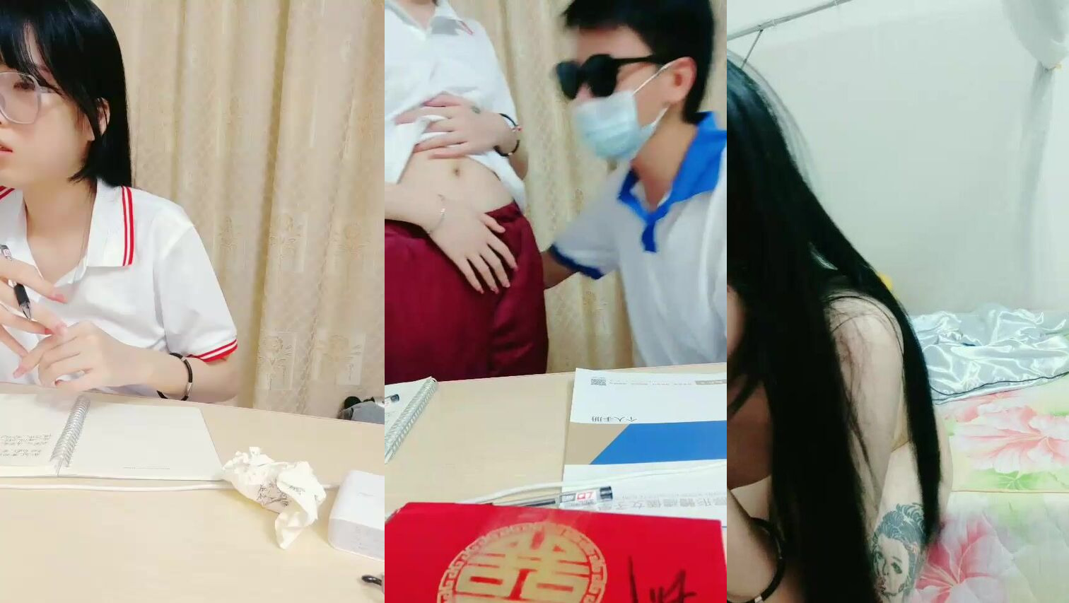 男舍友偷偷对着练瑜伽的性感女大打飞机被发现,强行骑乘榨汁