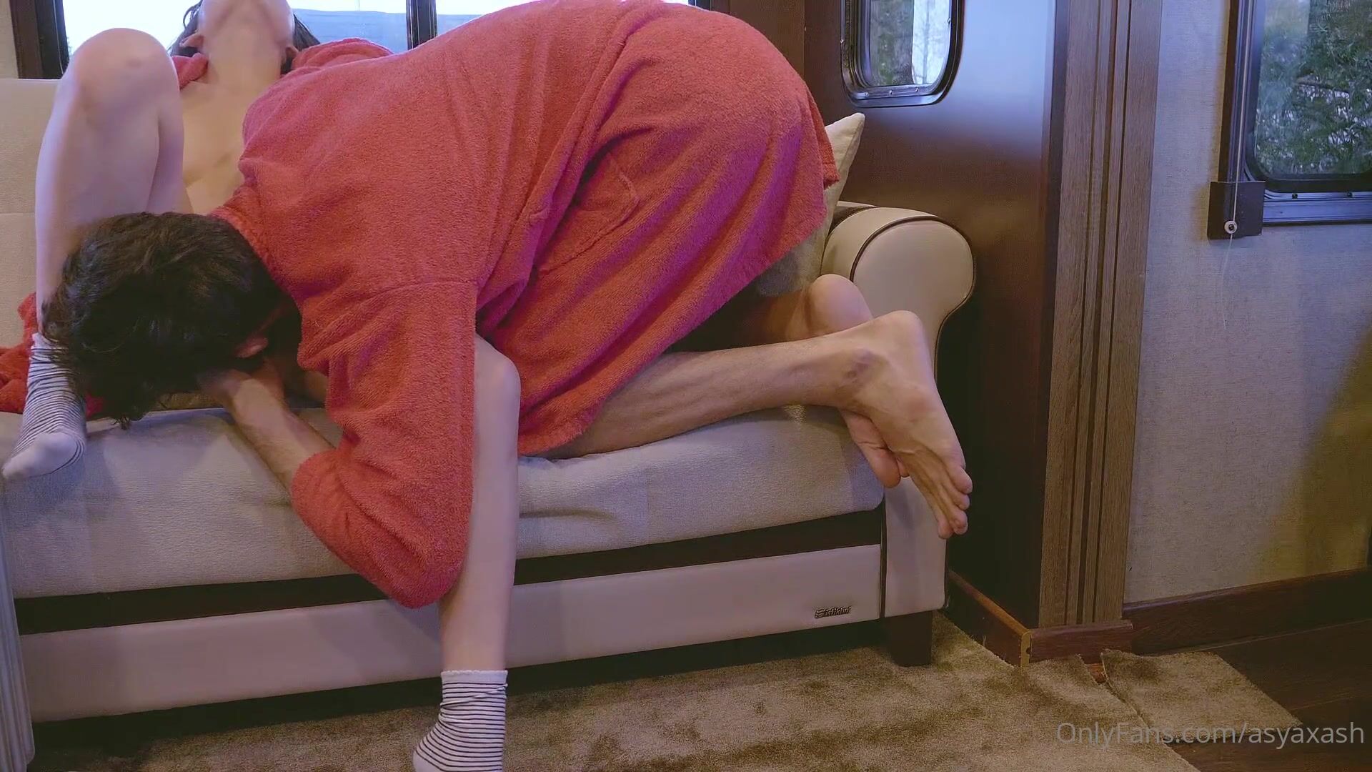 男舍友偷偷对着练瑜伽的性感女大打飞机被发现,强行骑乘榨汁