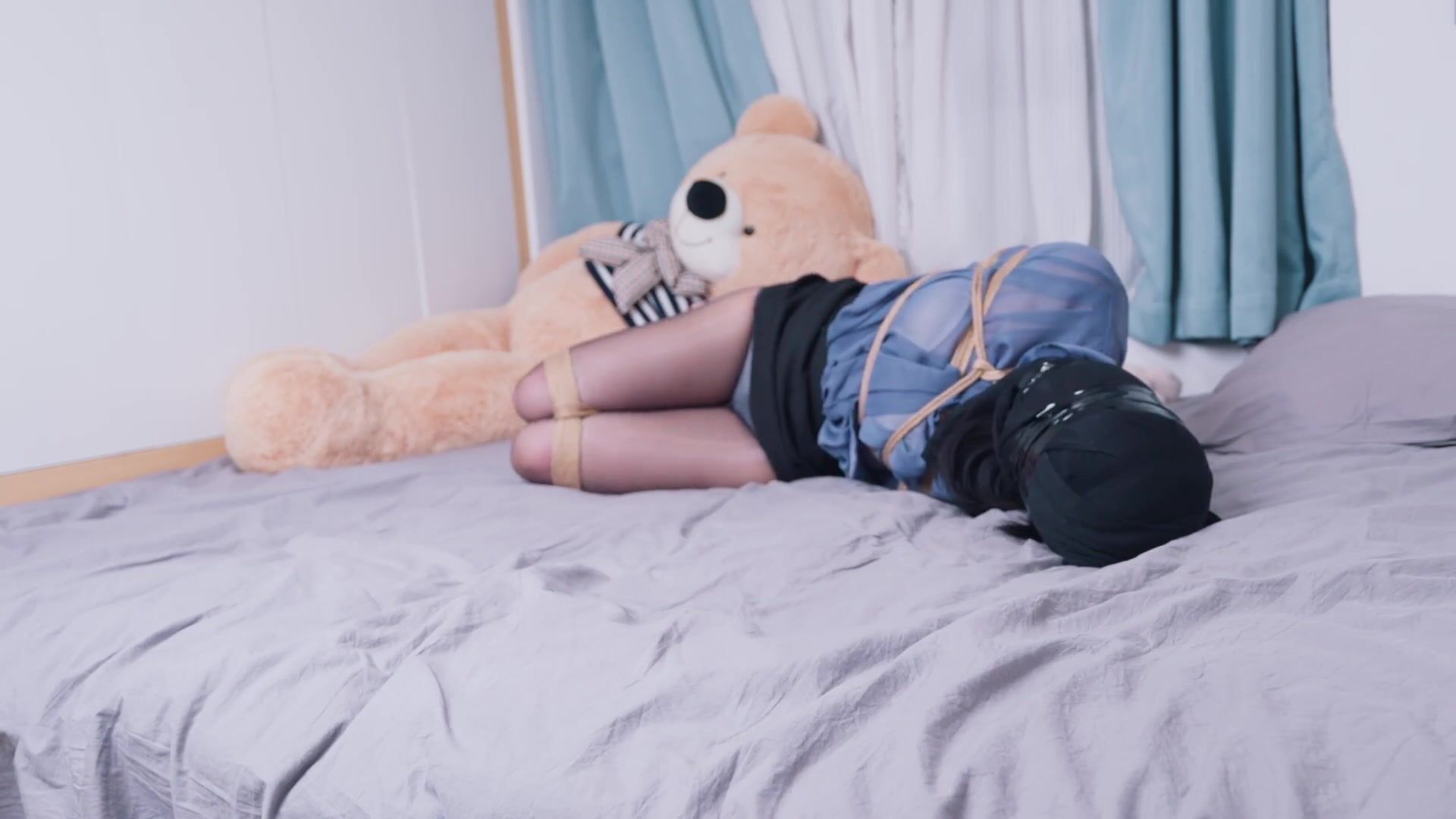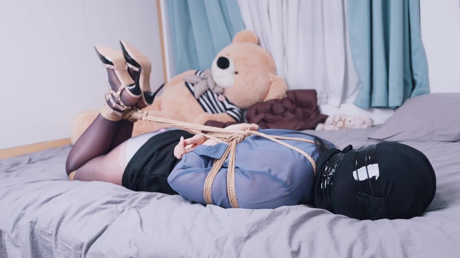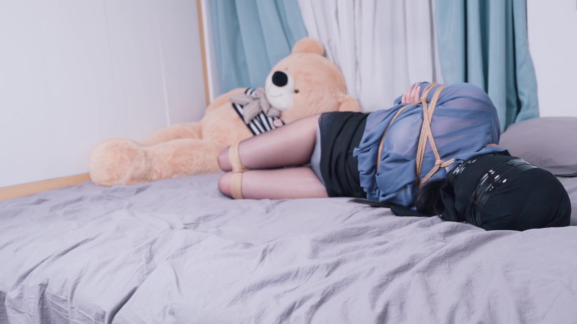 【悠米】《OL的游戏5》超长时间放置呼吸限制游戏+丝袜头套全包+胶带二次缠绕+遥控强制羔潮,只能听到部分呻吟声